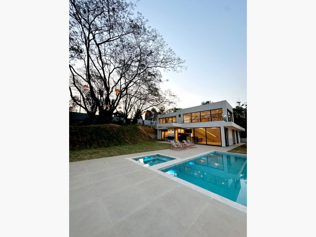 Casa moderna e integração com a natureza,imovel que oferece sofisticação, modernidade e uma vista deslumbrante, design arquitetônico contemporâneo que valoriza linhas retas, amplos vãos envidraçados e uma conexão única com a natureza ao redor,Dormitórios com espaços amplos e bem distribuídos, suítes com grandes janelas que privilegiam a iluminação natural e a vista para o verde
